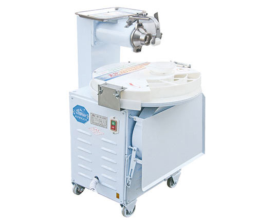 2、接通電源,檢查絞龍轉(zhuǎn)向以螺旋向前推進(jìn)為正確。使用時(shí)將面團(tuán)連續(xù)放入絞龍?bào)w,切刀可自行切下定量面團(tuán)落入成型盤(pán),成型后饅頭自動(dòng)拋出。生產(chǎn)作業(yè)時(shí),操作者站在入面料口一側(cè),以免被刀劃傷,投面時(shí)切勿用硬物擠壓,防止零件異常損壞,使用時(shí)灑在吊輪上少量面粉,避免粘結(jié)。
